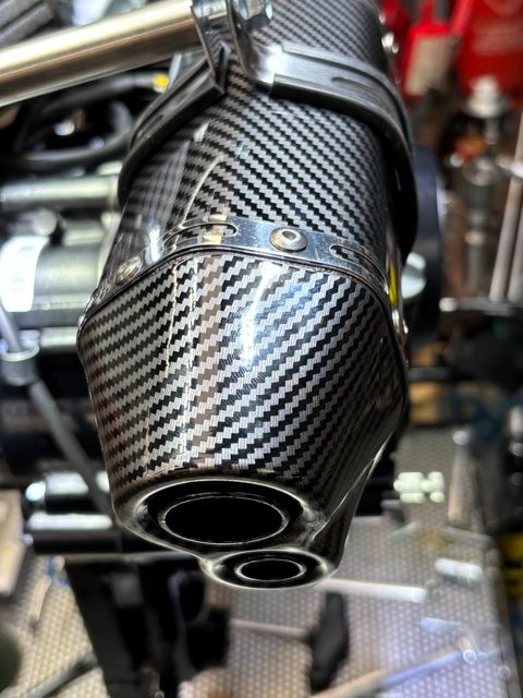 Full stainless front pipe Twin outlet carbon look