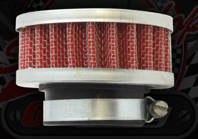 Air filter mini pan style 38 to 40mm fitting O/D of filter 74mm Depth of filter part 32mm These are a budget filter a fair amount of glue around end covers.