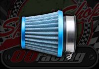 Air filter 35mm Blue cone style Filter body 64mm Overall with rubber 84mm O/D at large end 74mm Small end 51mm Includs clip. New old stock slight marks
