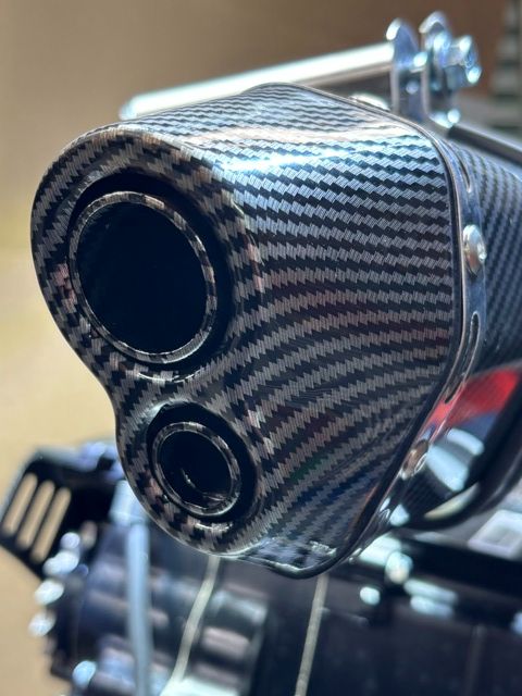 Full stainless front pipe Twin outlet carbon look