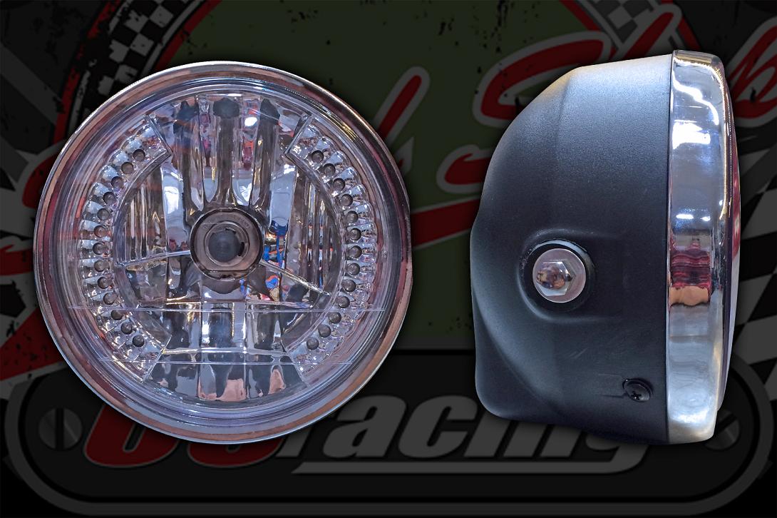 Custom Head lamp. 35w/35w halogen bulb. Array of LED indicators.
