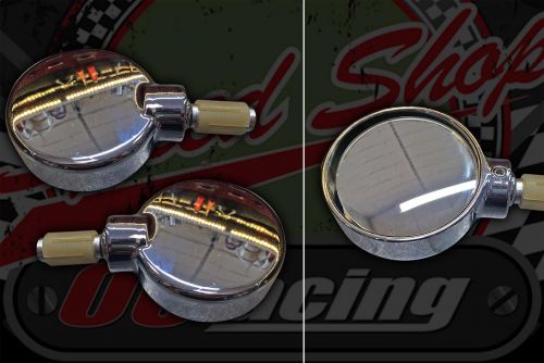 Bar end Mirrors. Plastic body. Choice of finish in black or chrome.