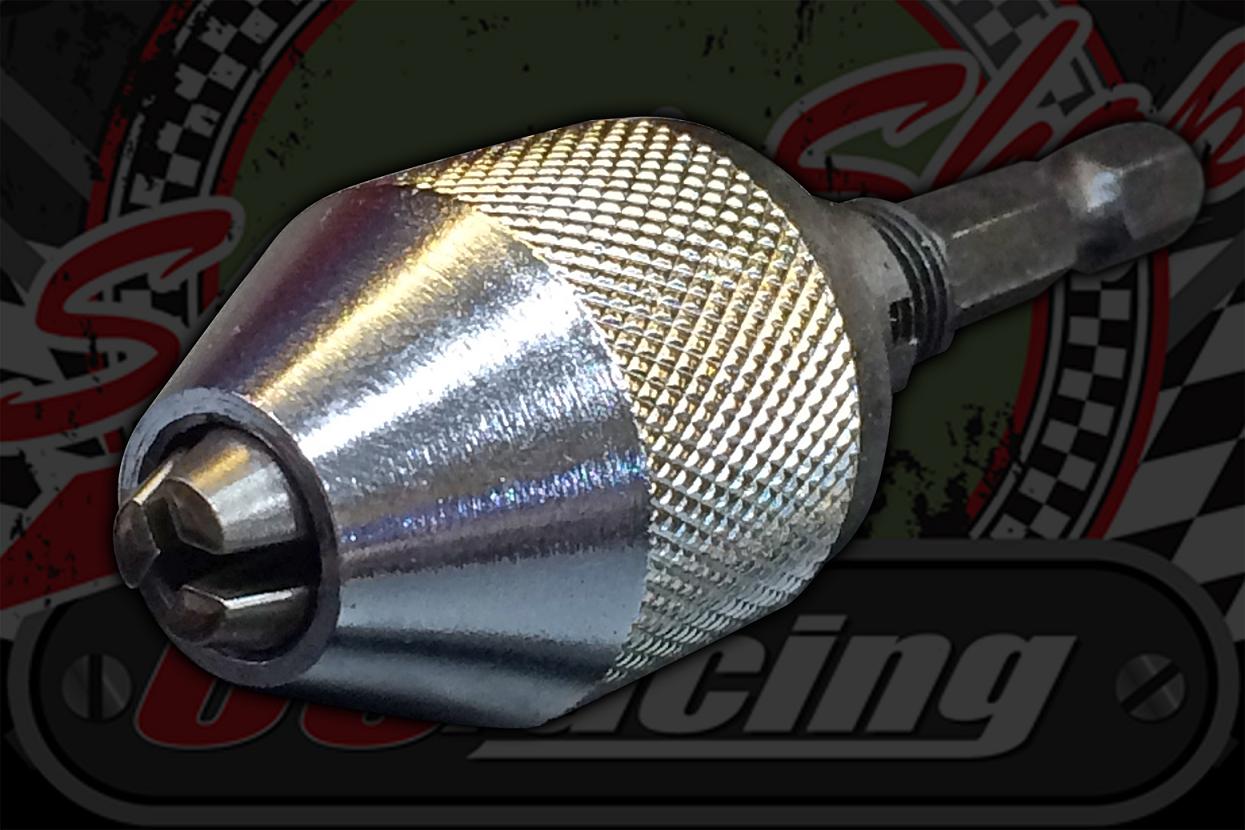 This tool is designed to fit in most cordless drills with 1/4" drive and holds very fine drill bits enabling easier drilling of Jets and other very fine detail applications.