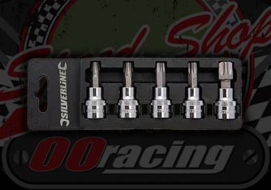 Hardened and tempered Trx bits with satin finish, mounted in polished chrome vanadium square drive socket. Contents: 1/4" drive T10, T15, T20, T25 and 3/8" drive, T27, T30 and T40.